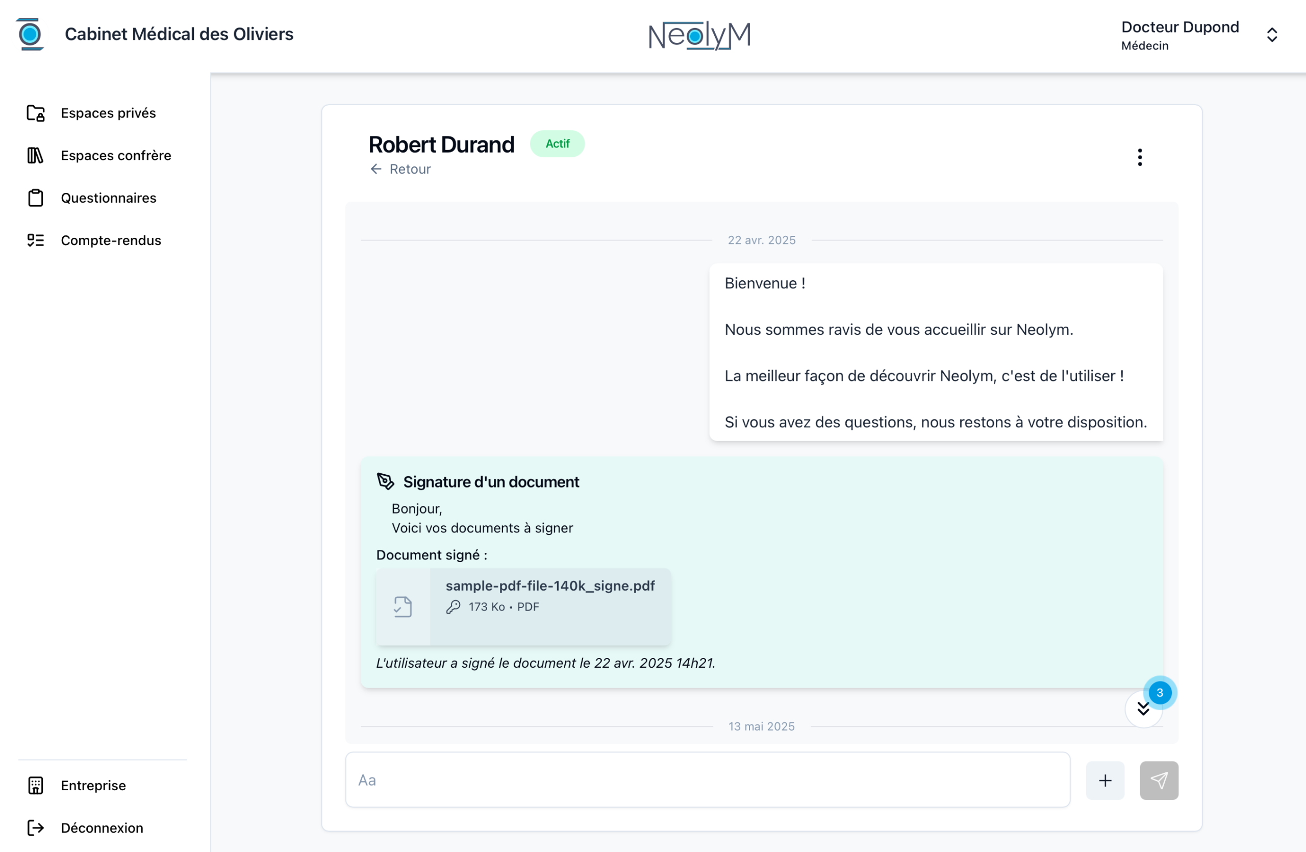 J’utilise Neolym au quotidien pour recueillir les questionnaires de santé de mes nouveaux patients et en conserver une trace formelle signée. Pour les devis, c’est un vrai gain de temps : j’envoie des rappels avec des informations claires sur les actes proposés. Grâce à l’interface, je maîtrise parfaitement les contenus partagés, et mes patients retrouvent facilement les informations données en consultation.